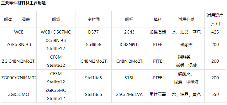 5、閥體材料品種齊全,填料、墊片可根據(jù)實際工況或用戶要求合理選配,能適用于各種壓力、溫度及介質(zhì)工況。