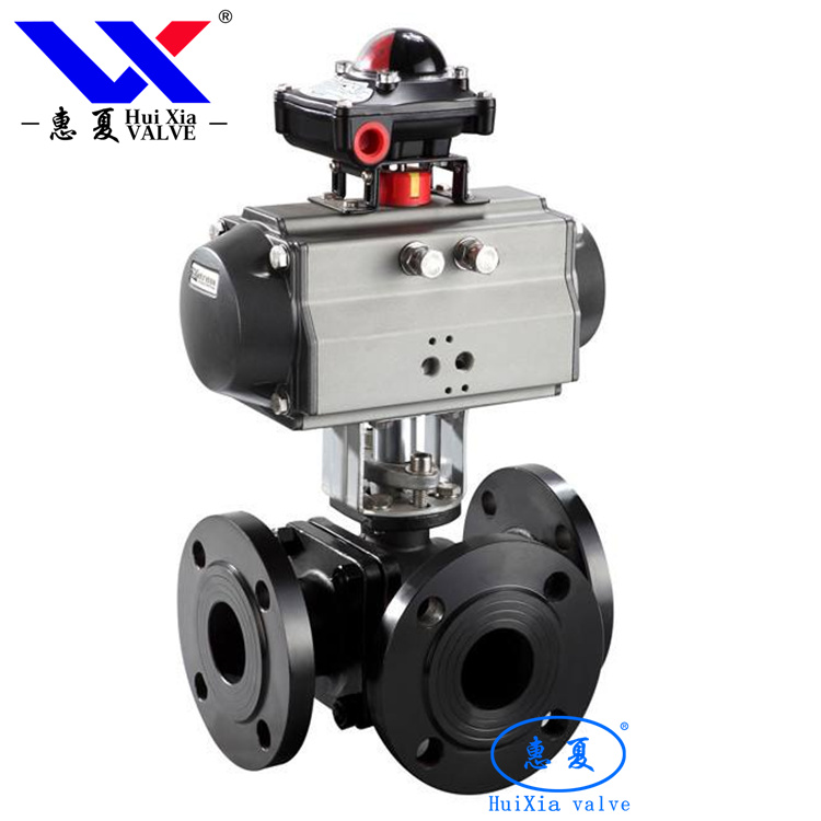 5、氣動(dòng)三通球閥、三通球閥在結(jié)構(gòu)上采用一體化結(jié)構(gòu),4面閥座的密封型式,法蘭聯(lián)接少,可靠性高,設(shè)計(jì)實(shí)現(xiàn)了輕量化。