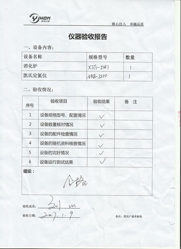 原來客戶使用的凱氏定氮儀質量差,購買完之后沒有售后服務,這次購買了祎鴻產品后得到了優質的使用培訓,技術指導,連測試結果都比以前要準確的多,因為實驗室會收到很多的樣本測試,使用NKB3200凱氏定氮儀紅外消解儀后,時間大大縮短,得到了客戶一致的好評。
