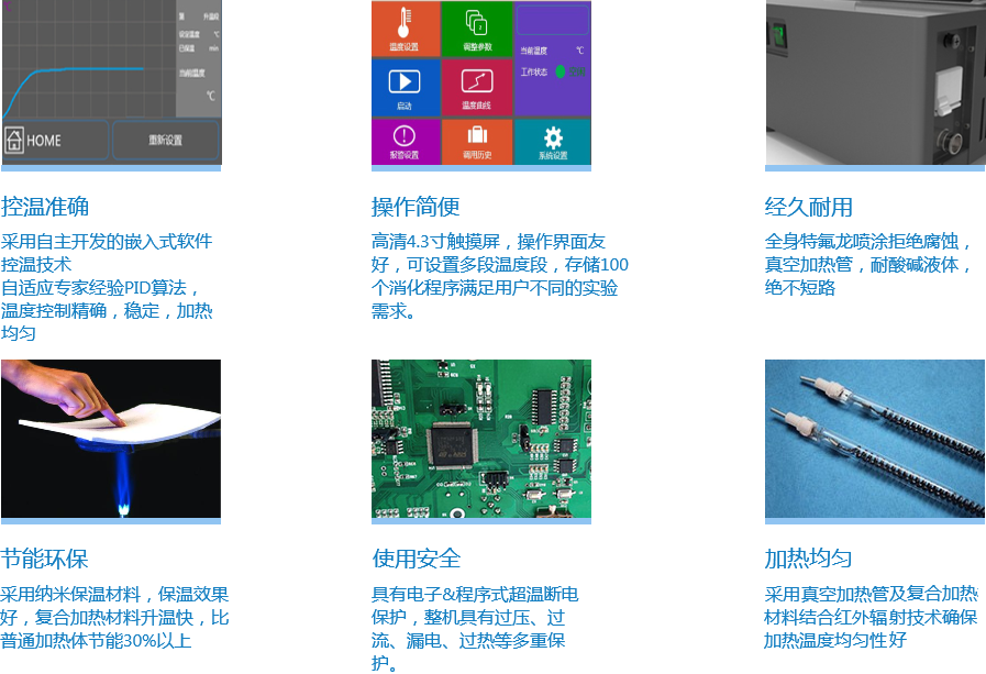 XTG5080紅外消解儀采用碳纖維加熱技術,升溫效率高,溫度均勻性好。采用行業領先的納米云隔熱材料,熱效率高,節能環保。免費咨詢電話:17717068667 王經理
